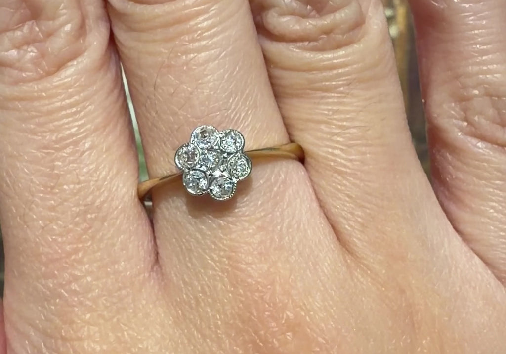Antieke entourage ring met diamant in oud slijpsel