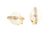 Een unieke set van 14 karaat gouden parel oorbellen, elk met een halo van 22 briljant geslepen diamanten rond het midden van de parel.