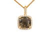 De diamanten zijn in totaal 0,23 karaat, van VS - SI1 in kwaliteit en H in kleur. De rookkwarts is 9 mm vierkant. De ketting is 40 cm lang en de hanger en ketting wegen samen 4,5 gram.