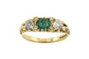 De smaragd heeft zichtbare insluitingen, waarvan er één het oppervlak van de steen bereikt. De smaragd heeft een diepe, donkergroene kleur en is stabiel in de zetting. De ring is aan de zijkanten van de zetting en op de schouders versierd met een klassiek krulmotief.