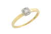 An 18 carat yellow and white gold ring with a princess cut diamond and twelve small brilliant cut diamonds.