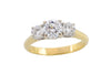 An 18 carat yellow and white gold ring with three brilliant cut diamonds.